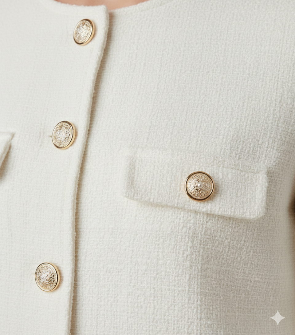 Beyaz Gold Düğme Detaylı Premium Tweed Ceket (Beyaz)