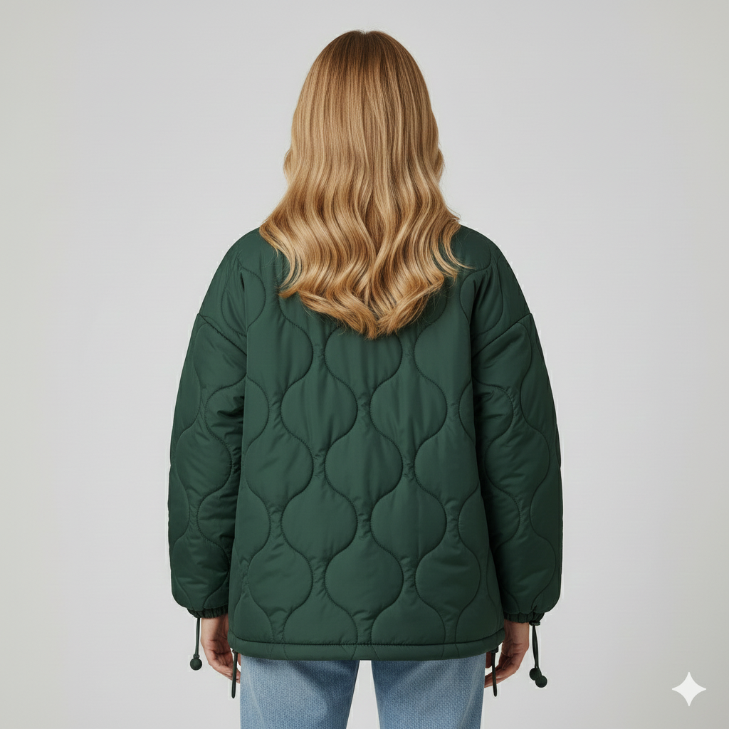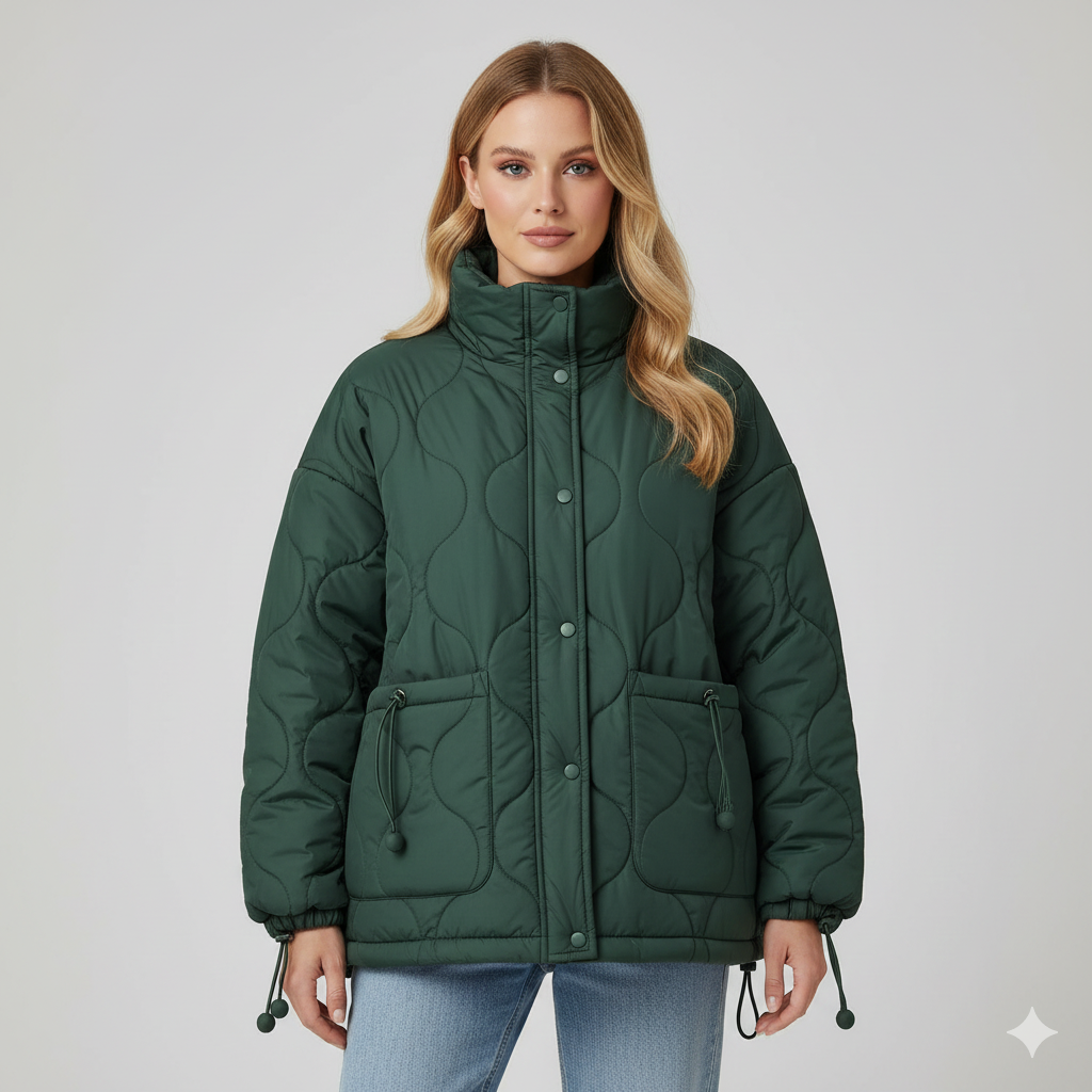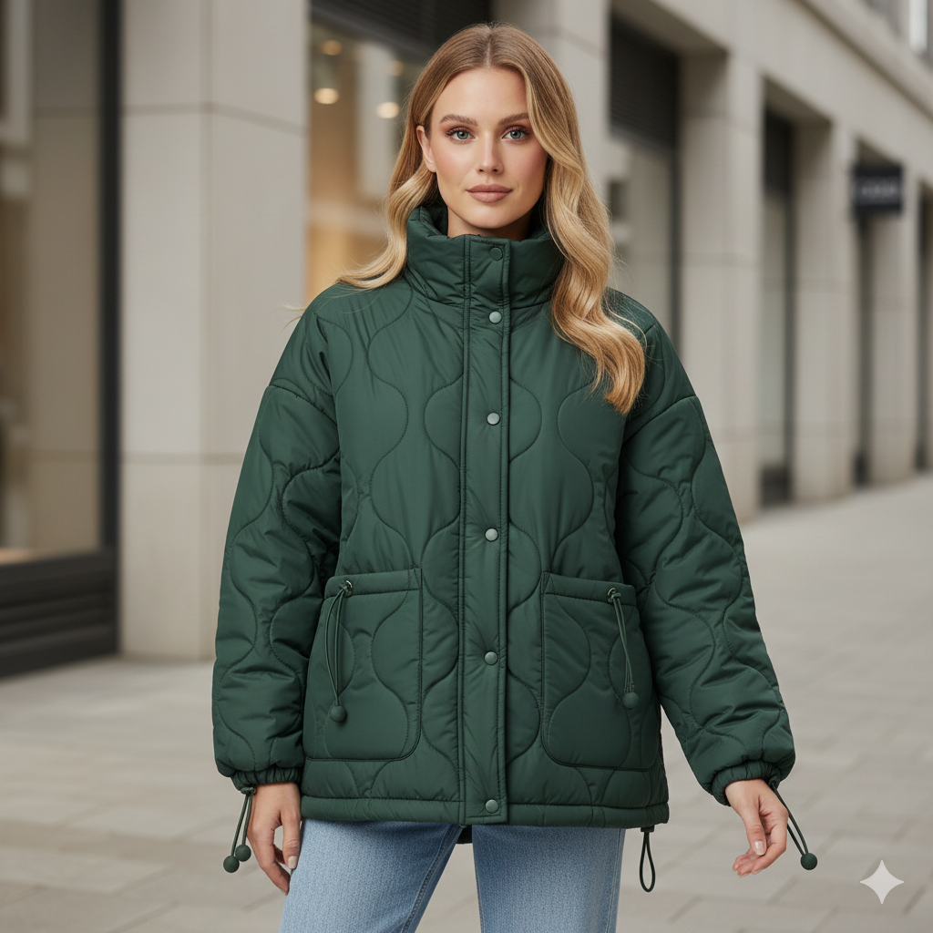 Desenli Oversize Dolgulu Şişme Mont
