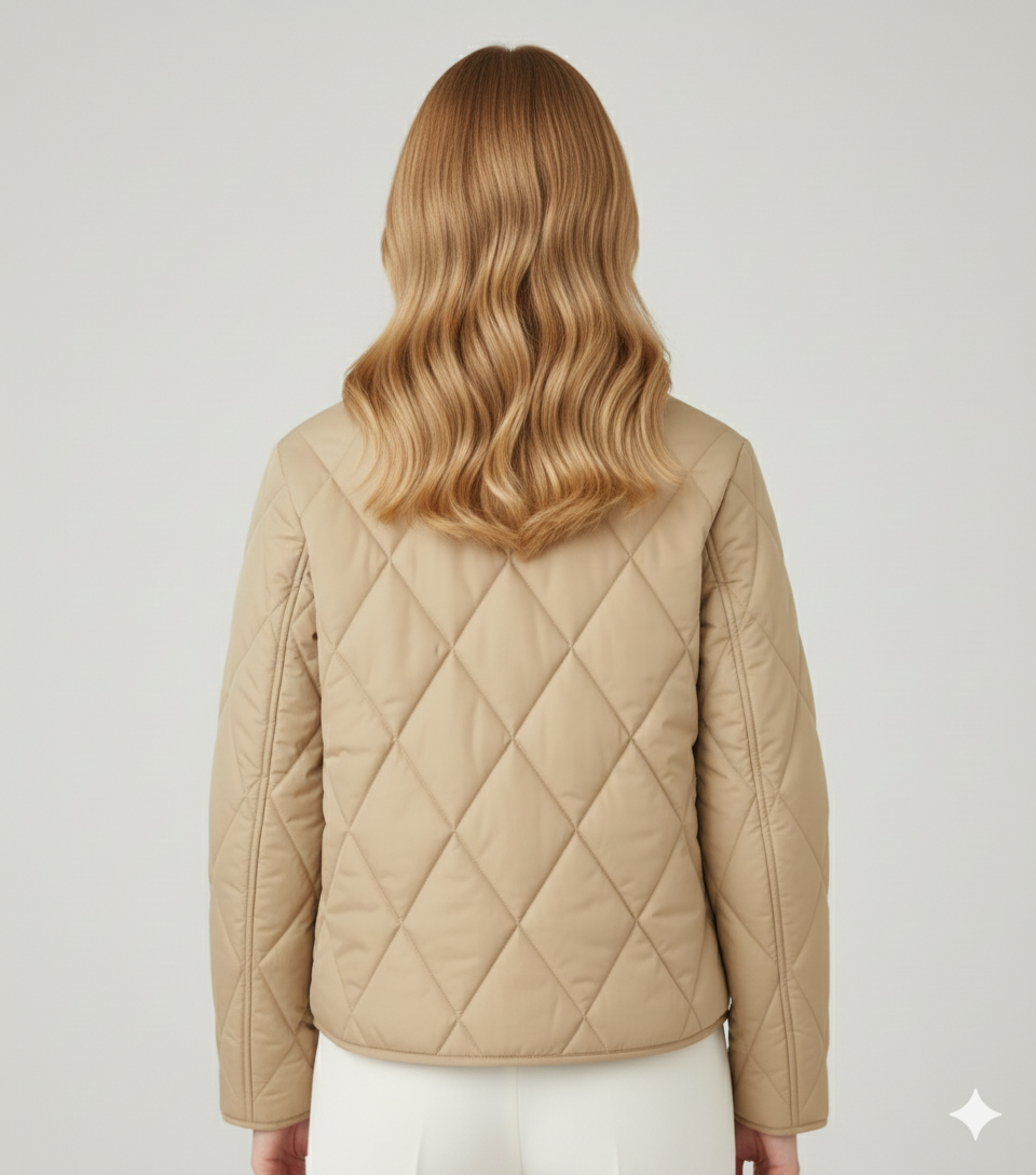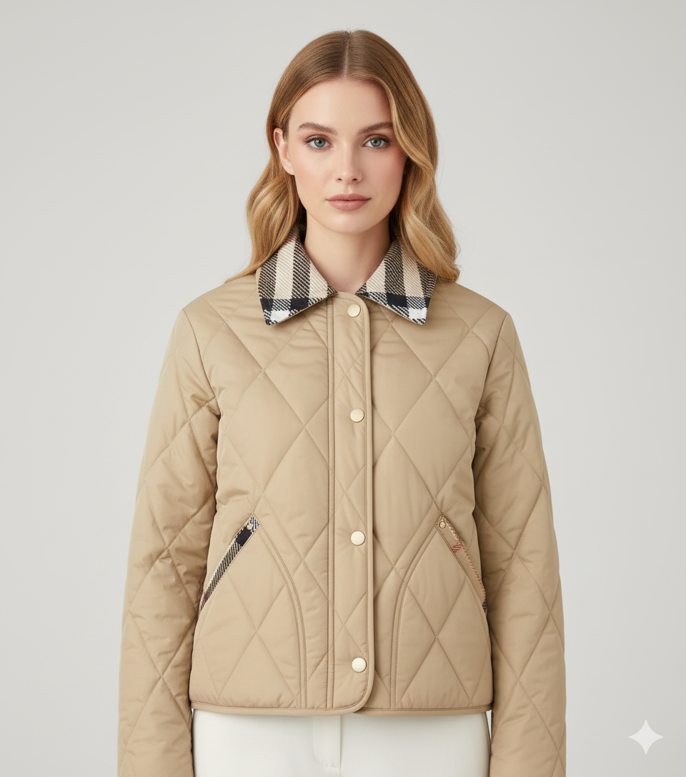 Ekose Yaka Detaylı Diamond Quilted Kadın Mont