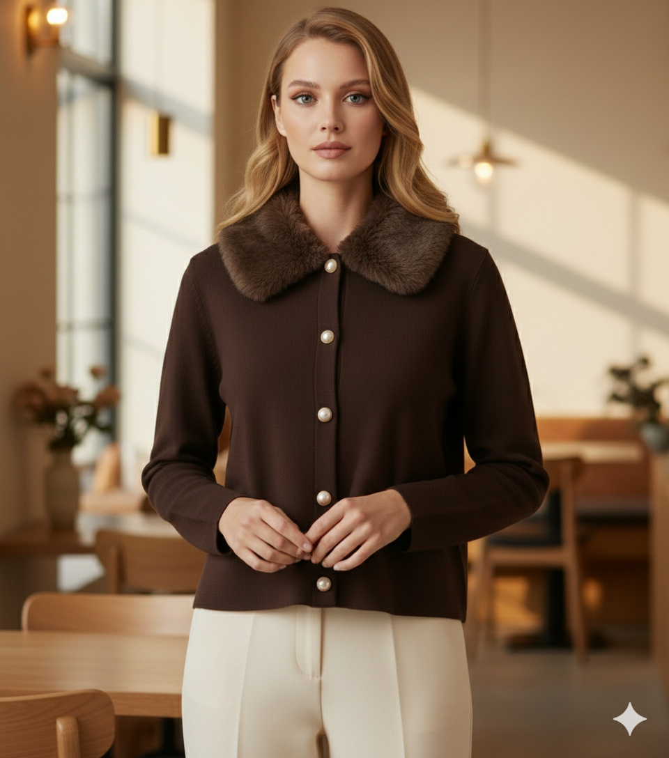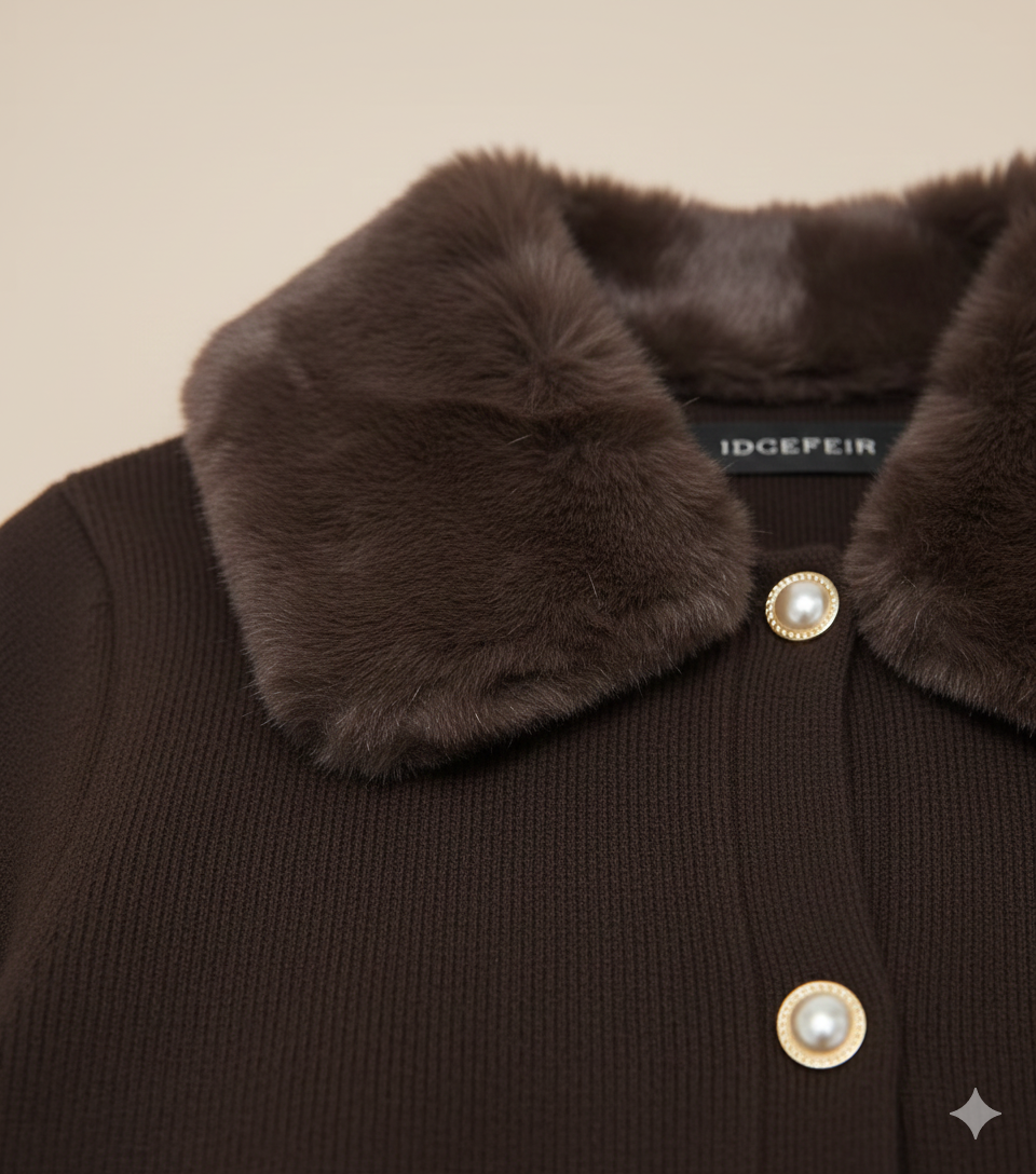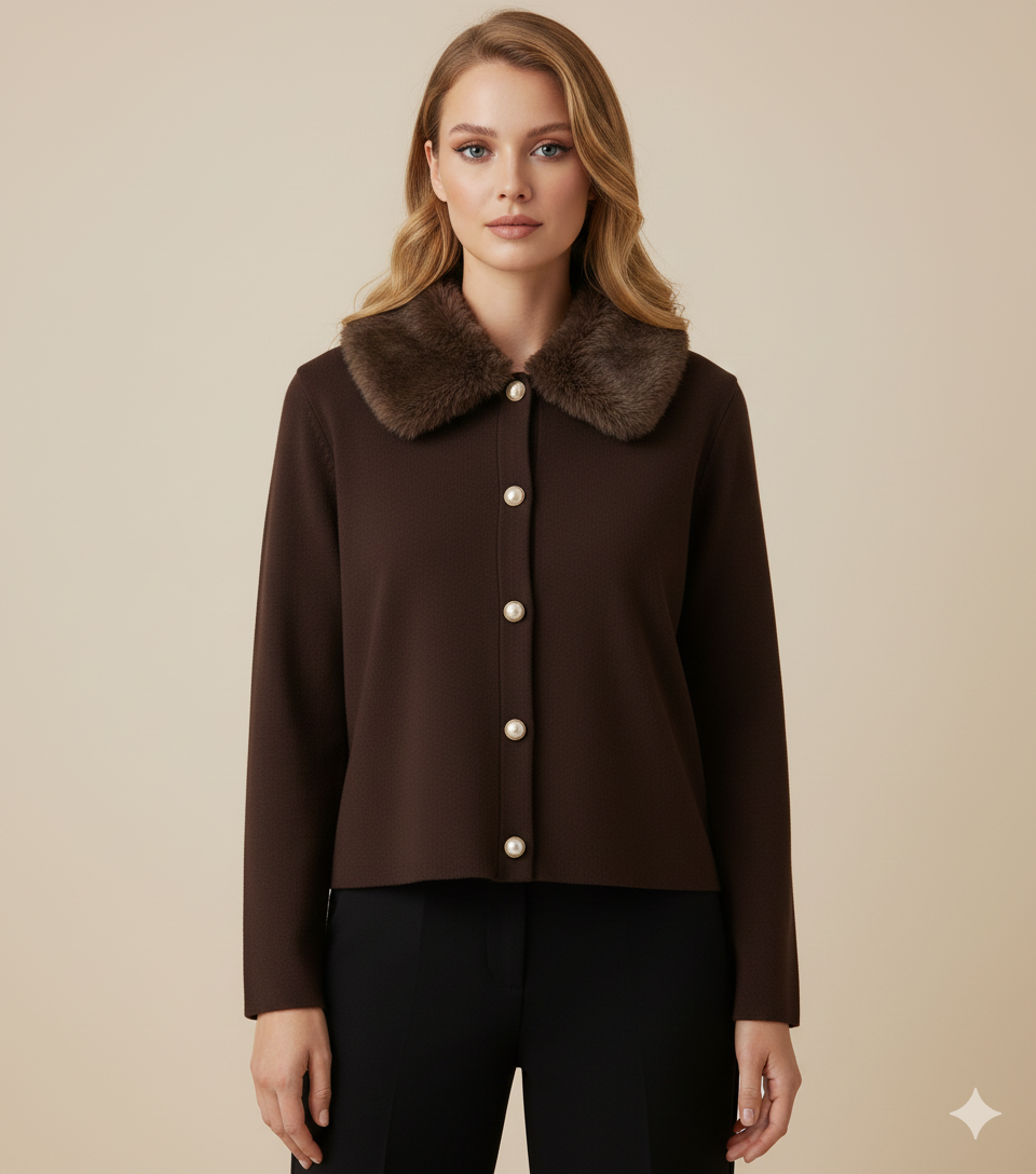 Kahverengi Kürk Yaka Detaylı İnci Düğmeli Ceket (Kahverengi)