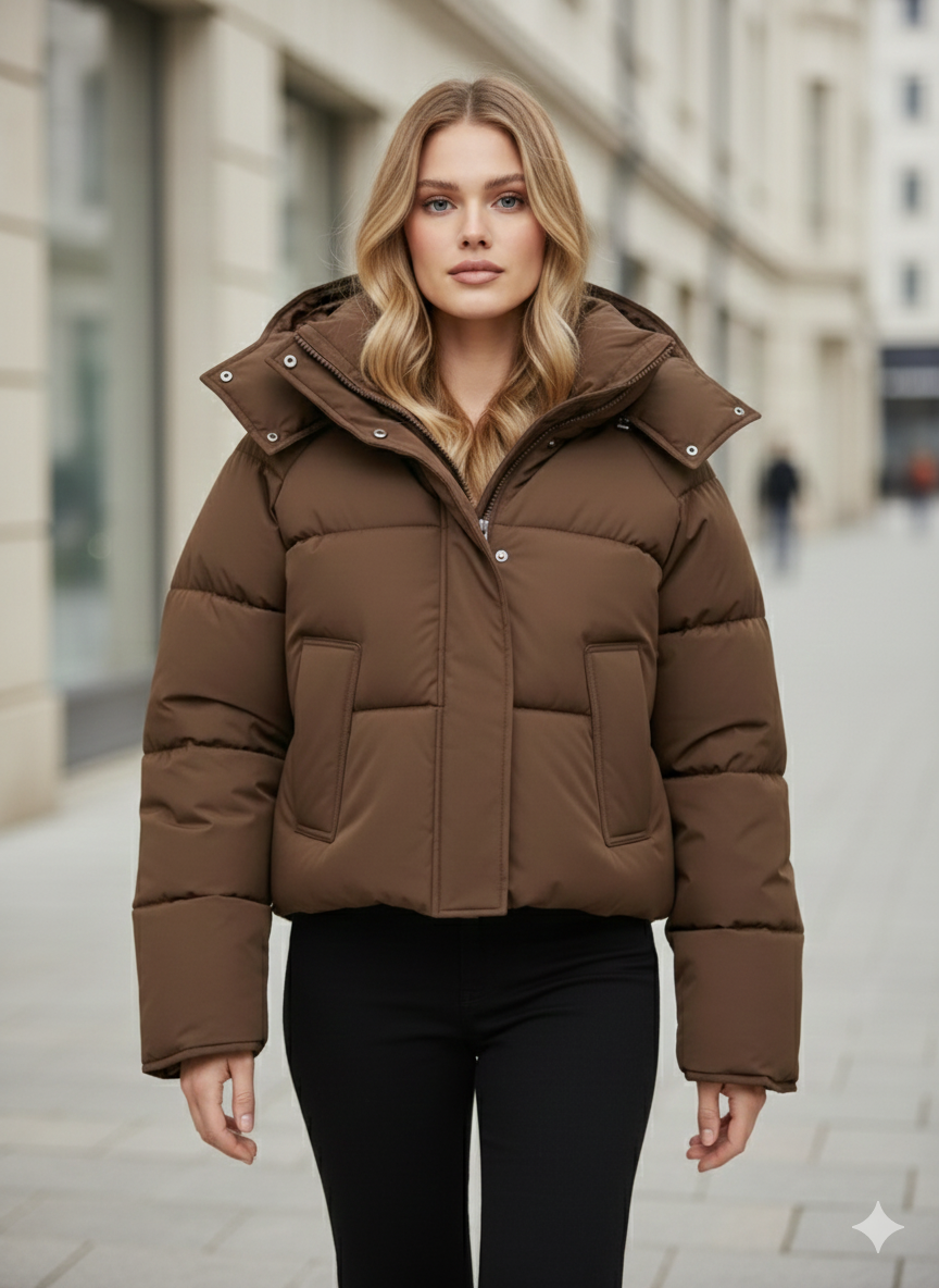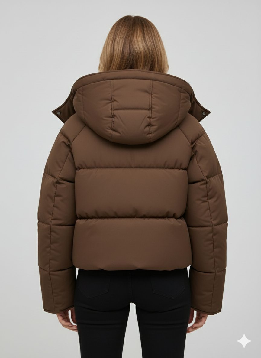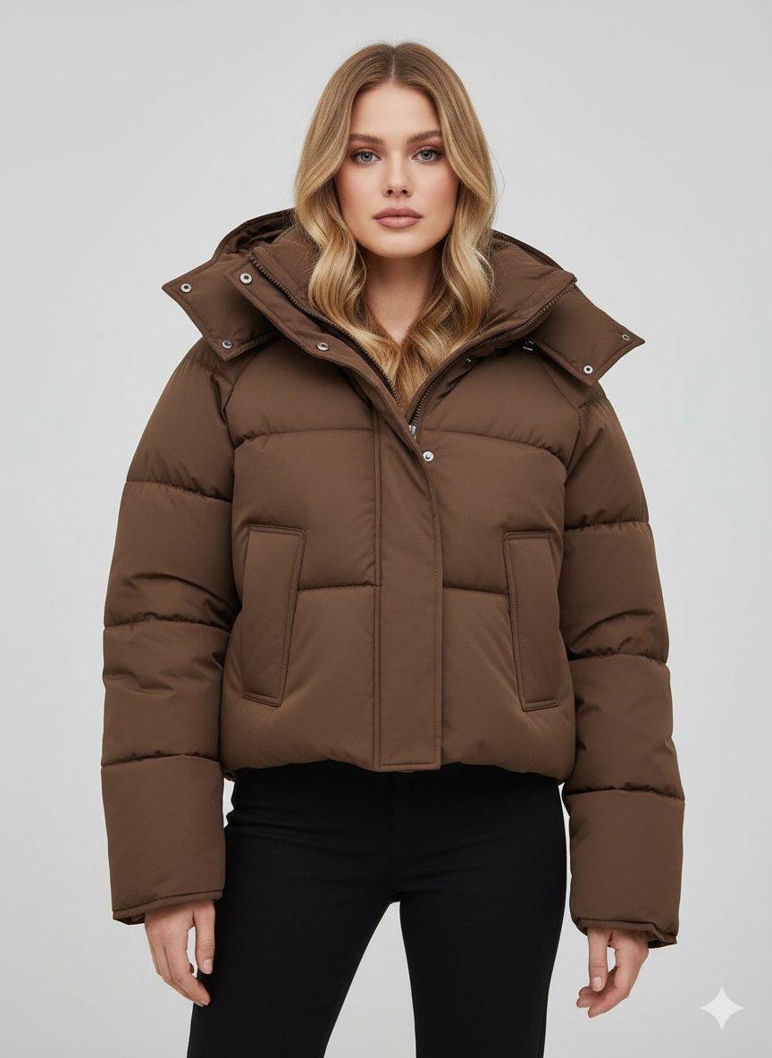 Kapitone Detaylı Oversize Dolgulu Kadın Mont (Kahverengi)