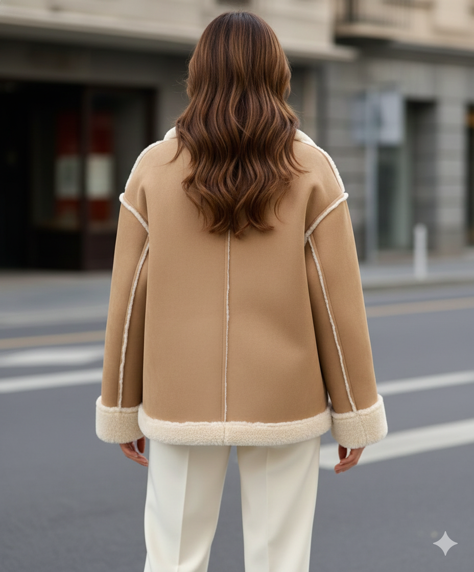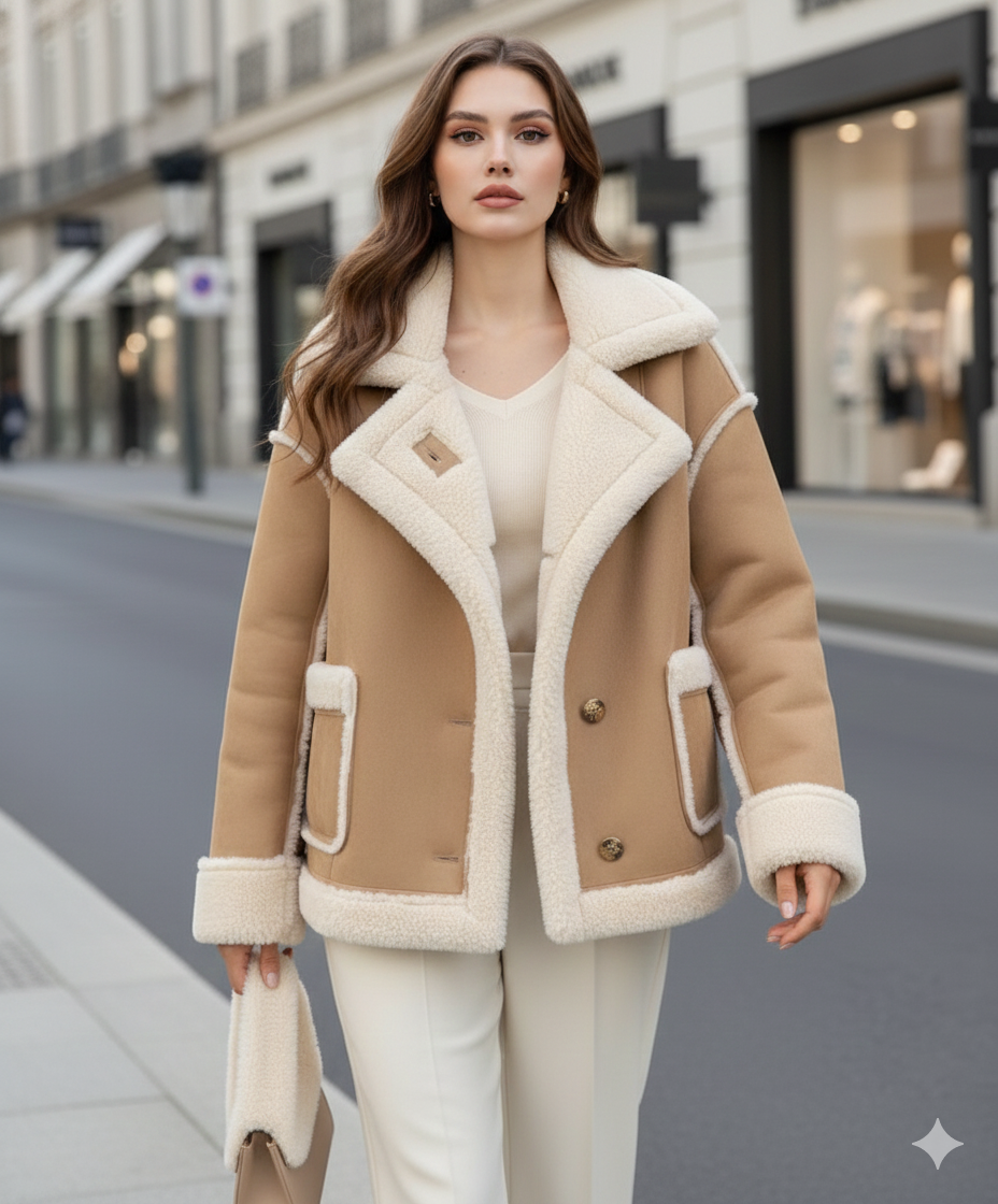 Krem Kürk Detaylı Camel Shearling Ceket (Camel)