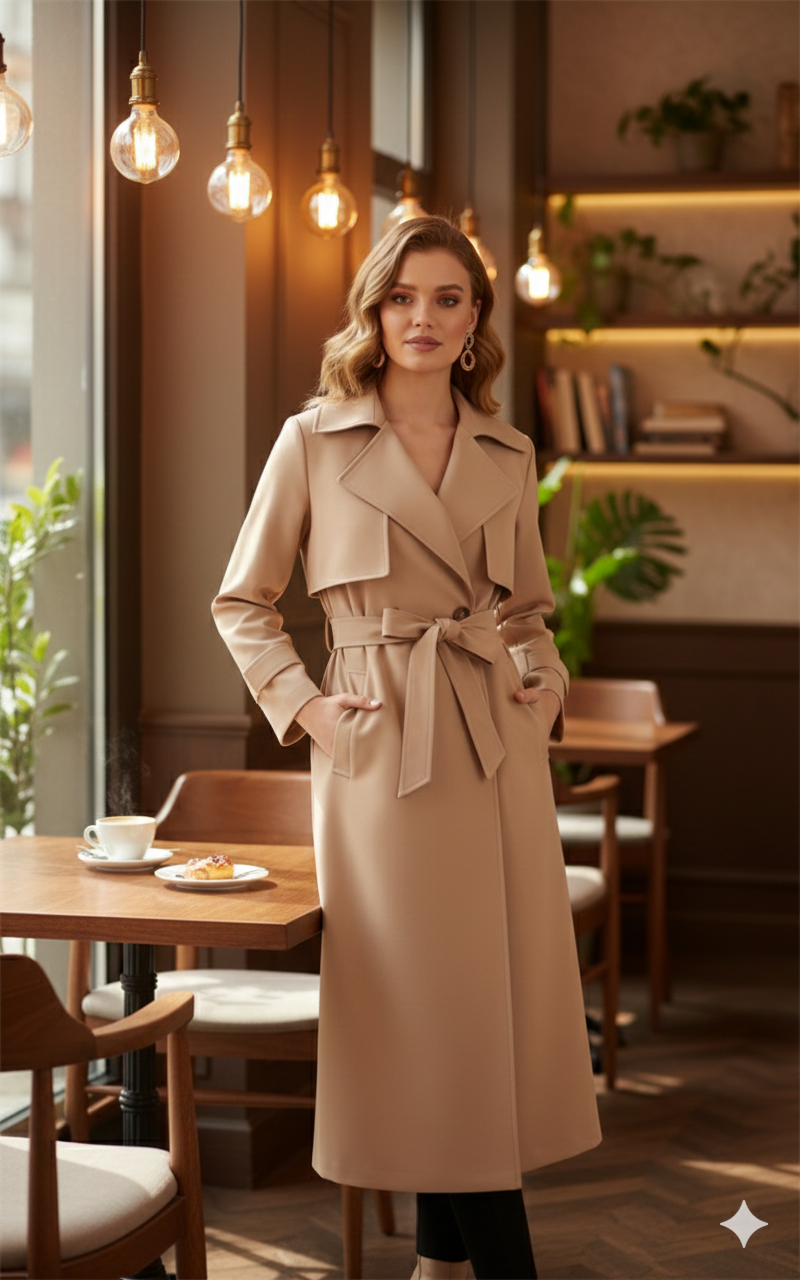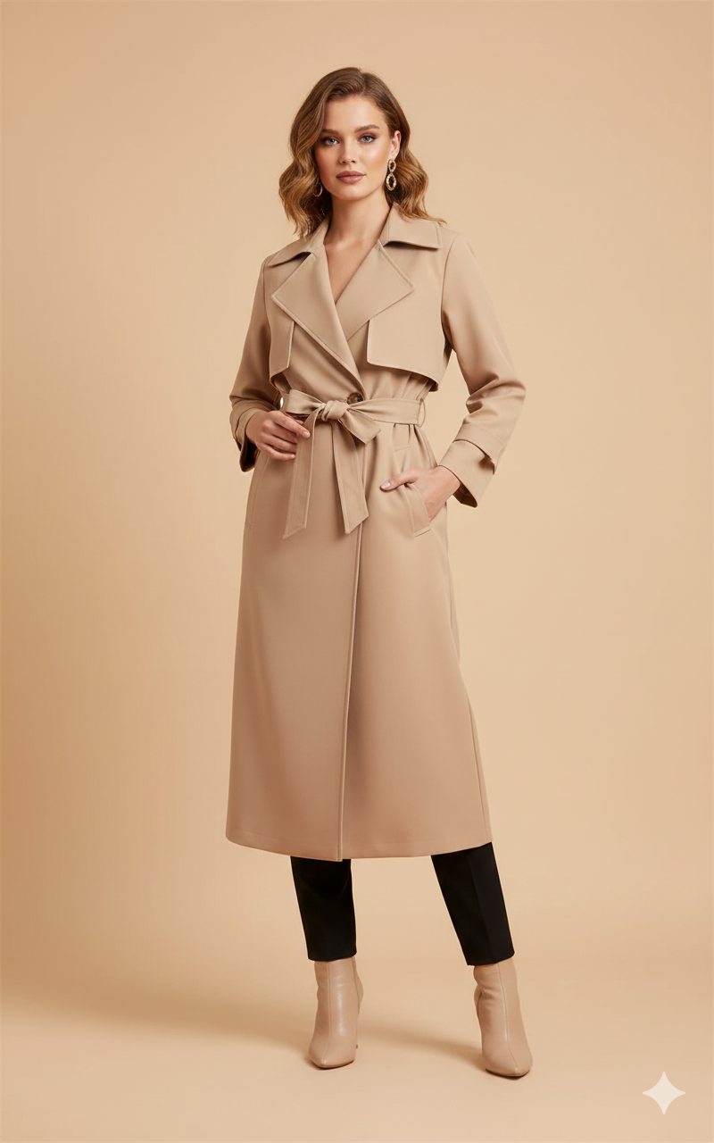 Premium Kemerli Bej Trençkot