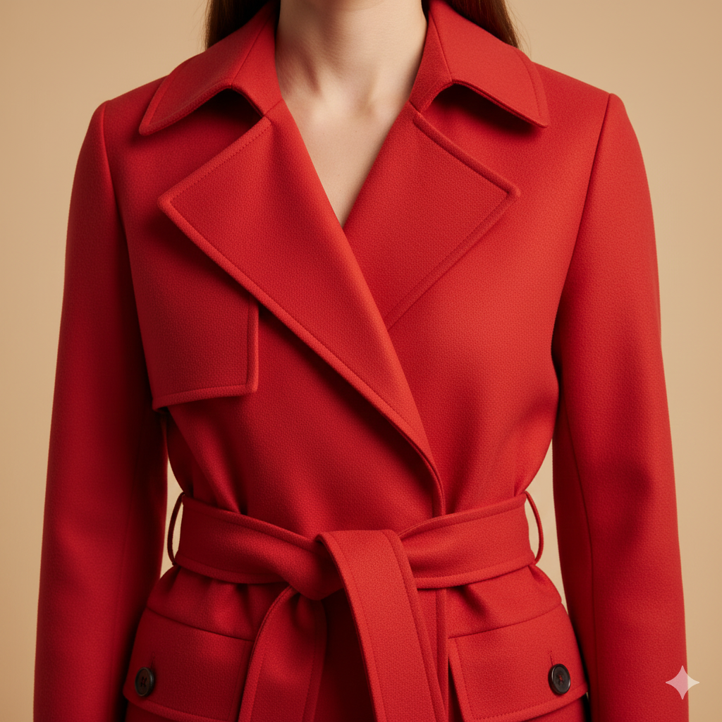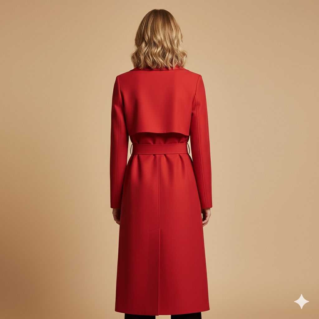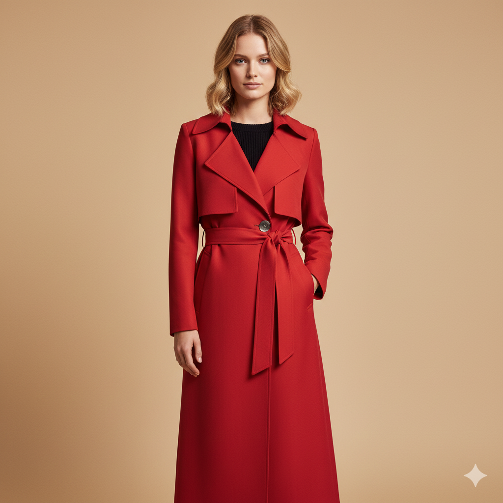 Premium Kemerli Uzun Kırmızı Trenç Kaban