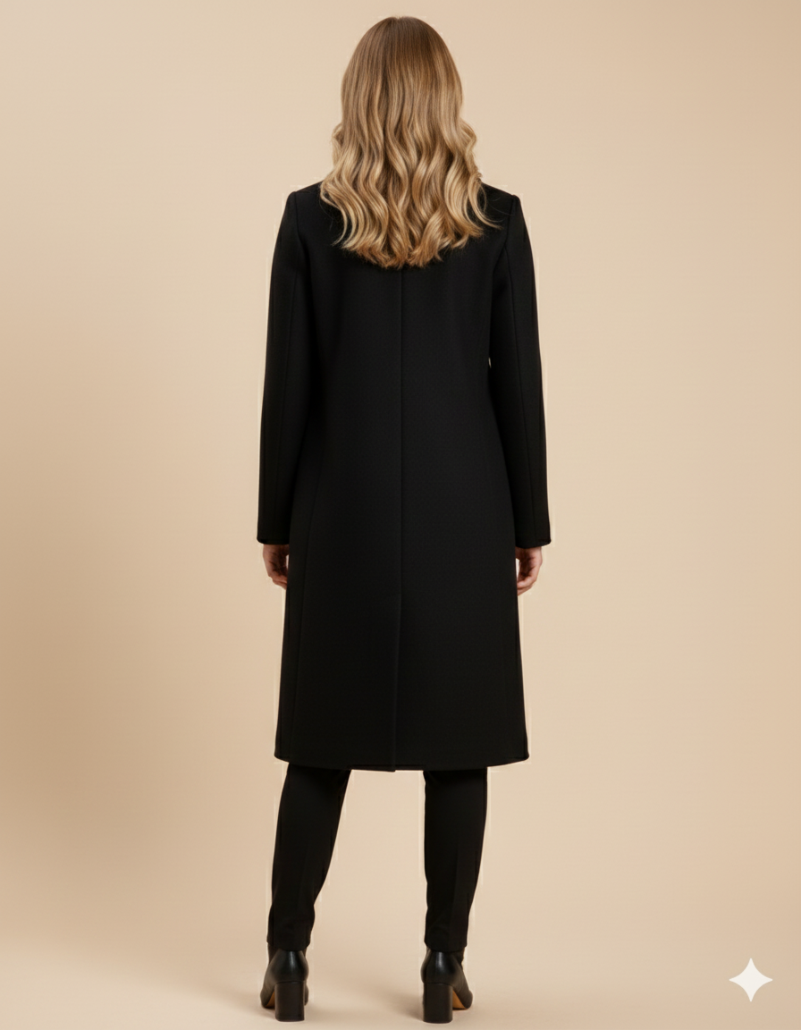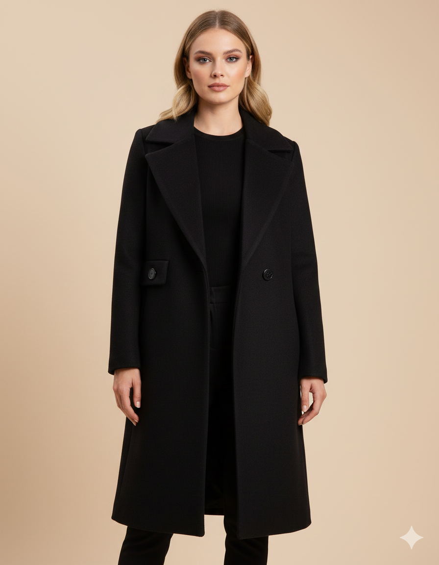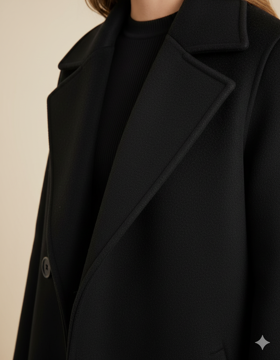 Premium Tek Düğme Siyah Kaşe Kaban