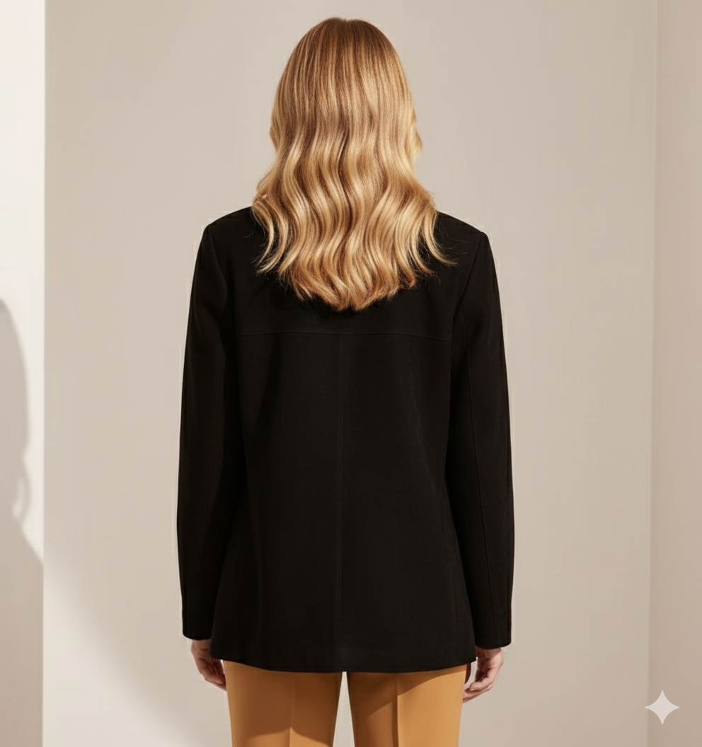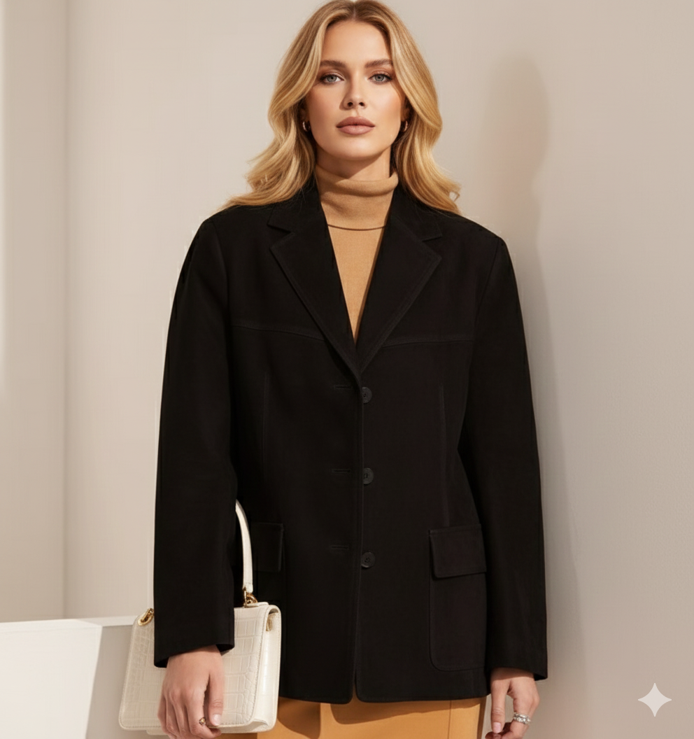 Süet Görünümlü Oversize Kadın Blazer Ceket (Siyah)