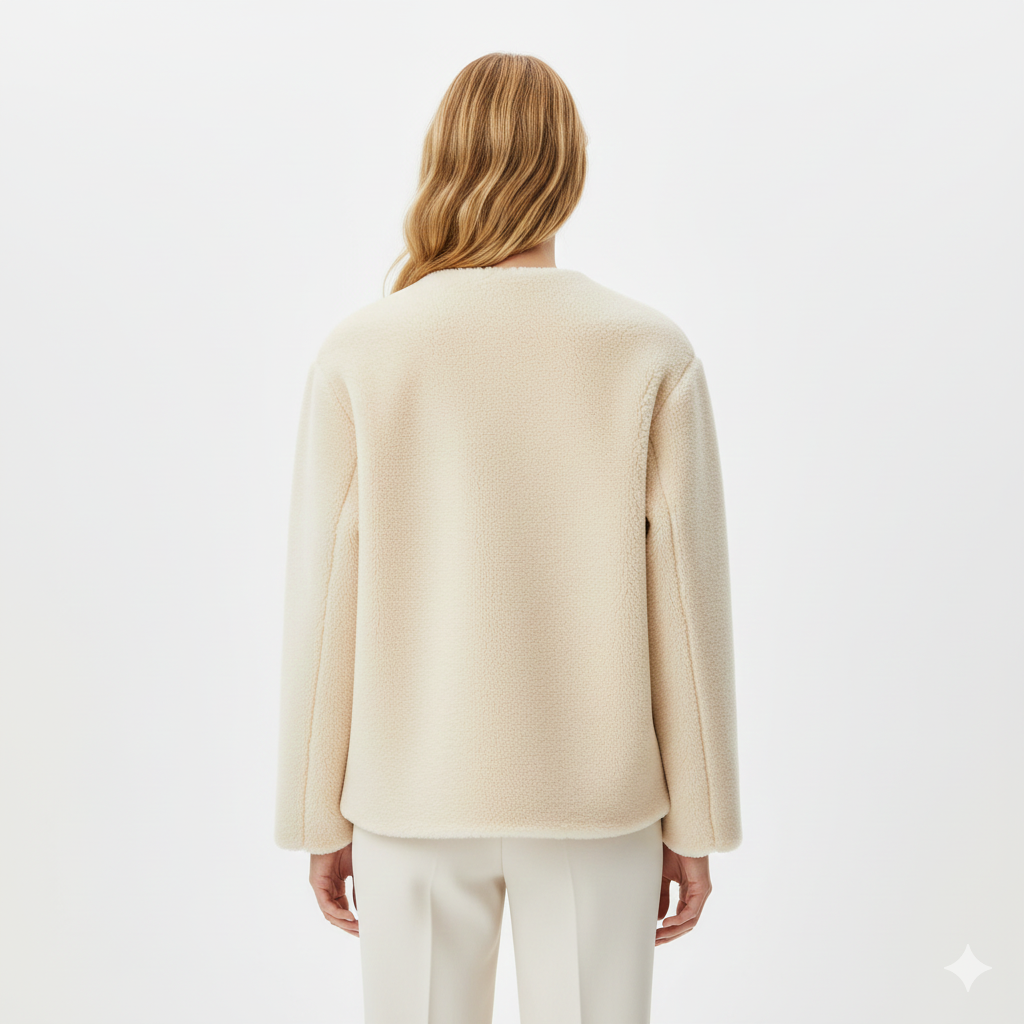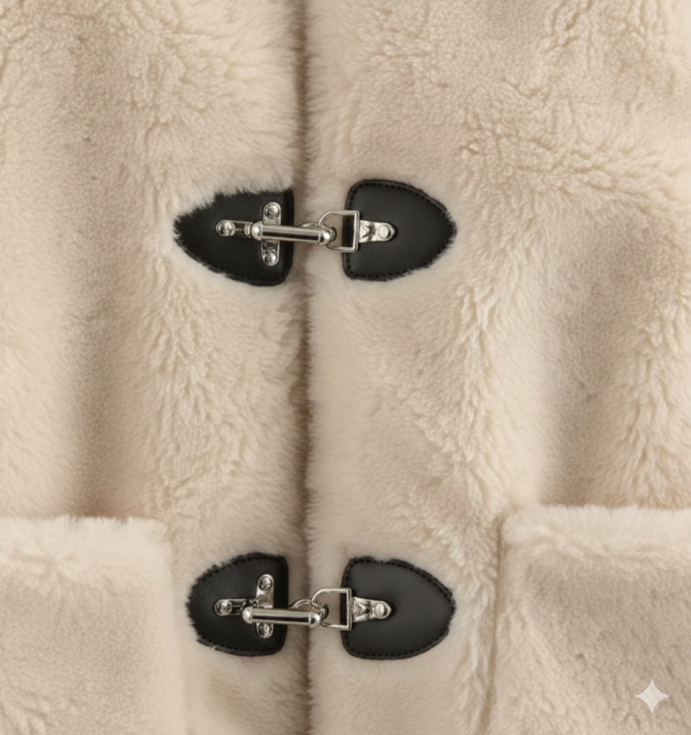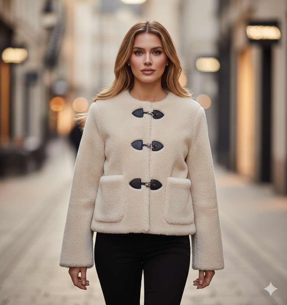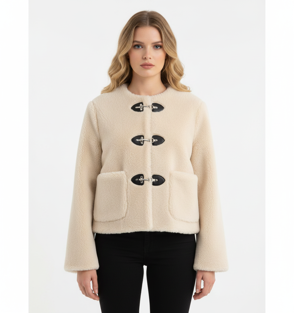 Tokalı Peluş Kısa Kadın Ceket (Krem)