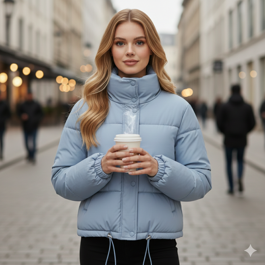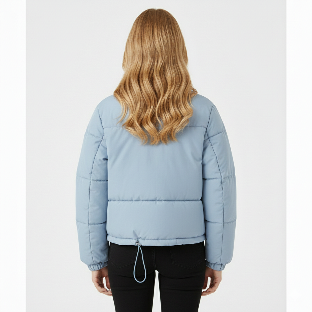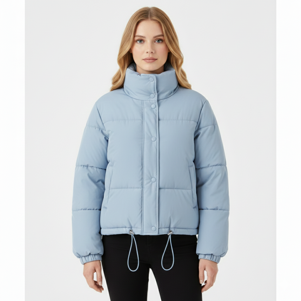 Yüksek Yaka Oversize Dolgulu Kadın Mont (Buz Mavisi)